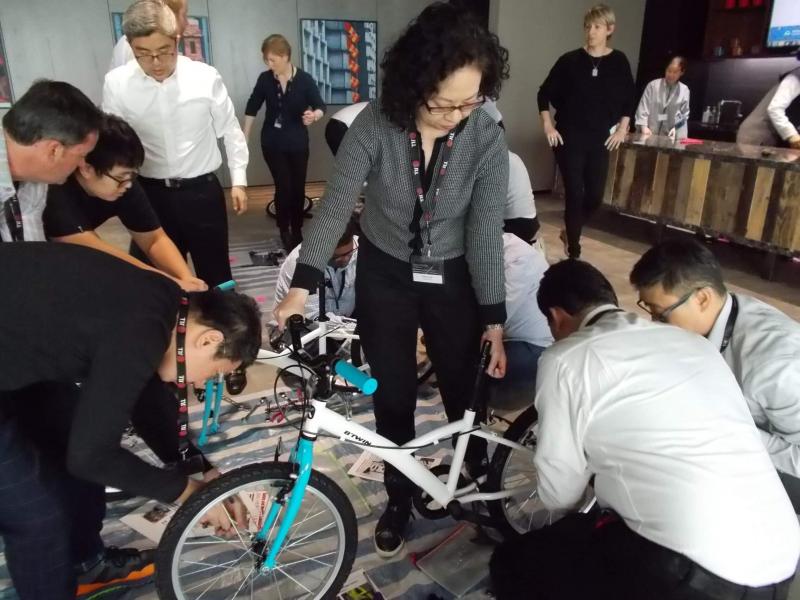 Representatives from global pensions, insurance and asset management group build bikes for charity with Building A Dream team building activity.