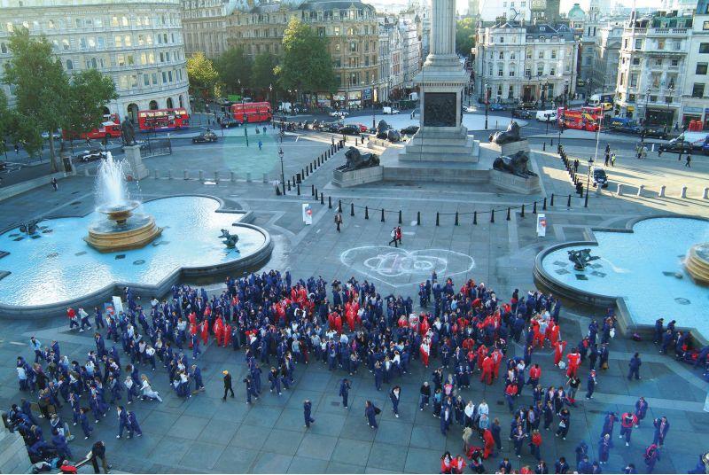 Participants put on designated coloured clothing. They are briefed on the position they will take, it may be part of a letter or icon. Each participant moves into position as a drone flies over head capturing the brand logo, icon or message.