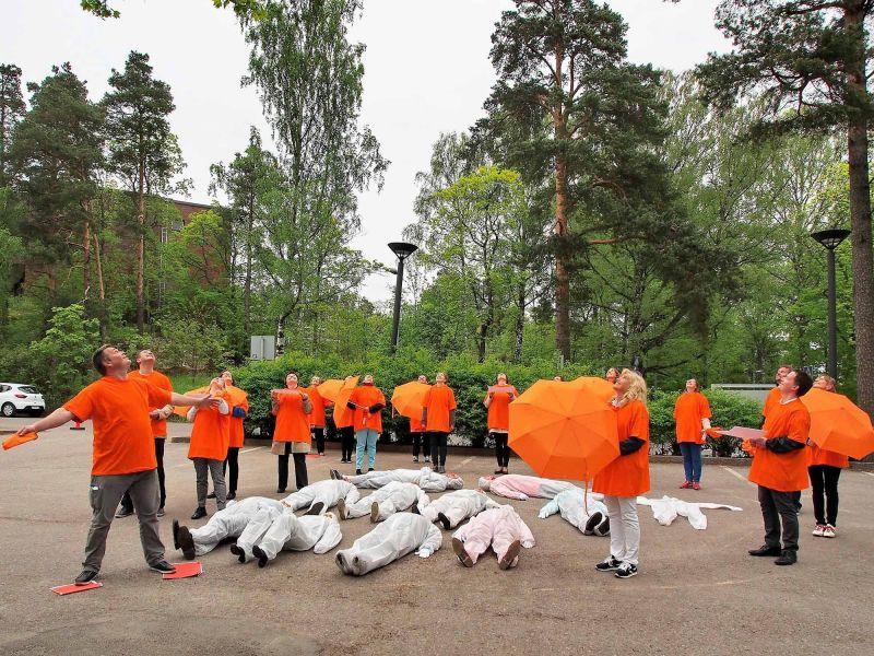 Teams illustrate a message with their bodies
