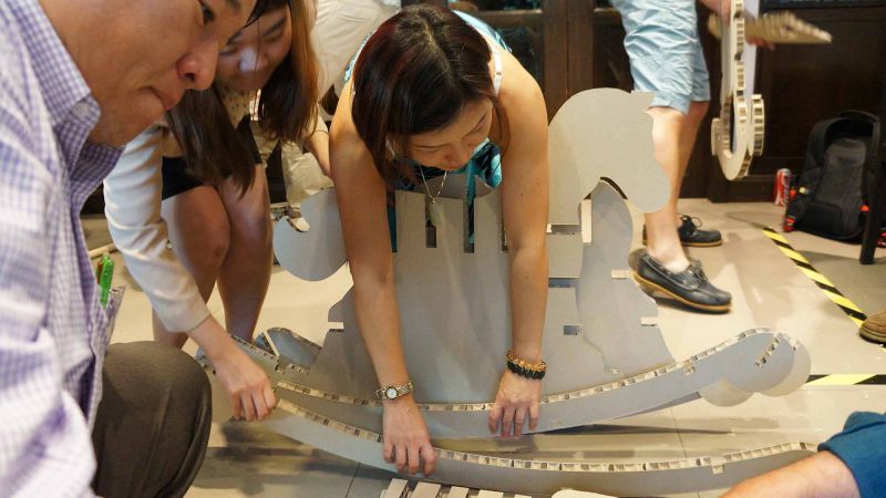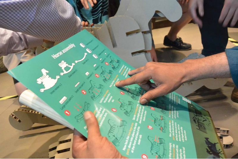 To kick-start the action, each team is presented with ingenious ‘flat pack’ rocking horse kits designed exclusively for Catalyst Global. It’s then heads down as a countdown begins and participants feverishly co-ordinate a myriad of pop out components. When the 3D equestrian creations resemble the blueprint, then your teams are ready to race.