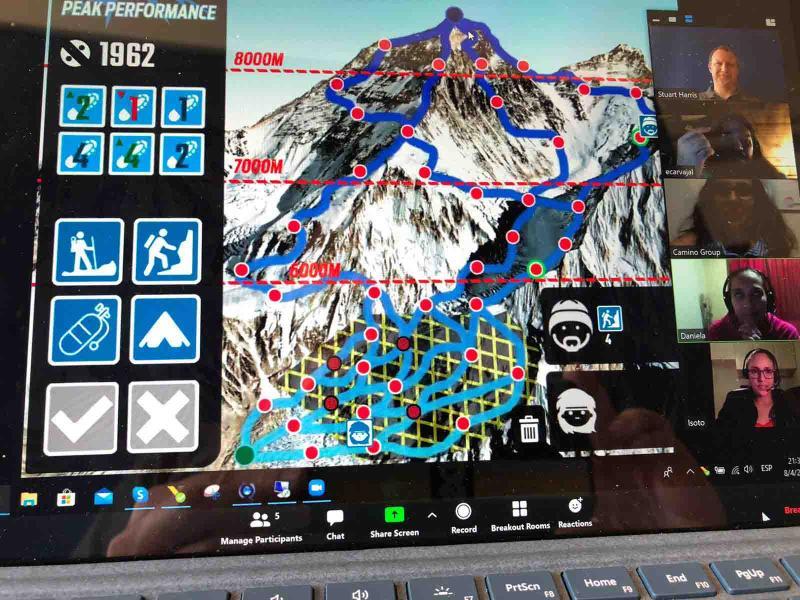 Peak Performance online is a remote team building activity where teams lead their guides up Mount Everest to the summit and return safely to basecamp over a 20-day expedition. Participants join the activity via video conferencing and work in teams in break out rooms. Each team member is responsible for a specific role and the related knowledge. They decide on how they will move each day and enter it into the game tablet. There are many variables to consider including changing weather conditions and terrain.Teams must make collaborative decisions based on elements such as oxygen requirements, acclimatisation, pitching tents and the like. Ultimately, the team with the most points at the end of the game is the winner.