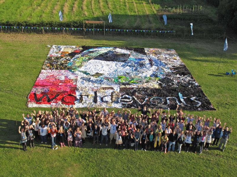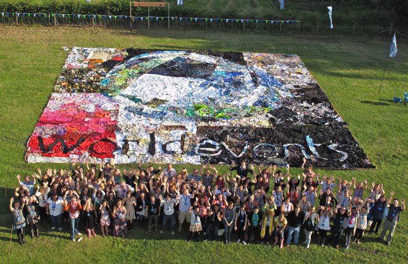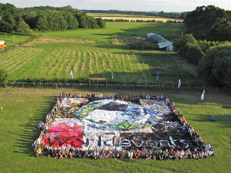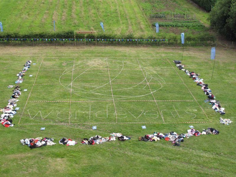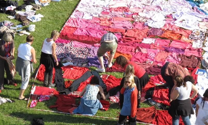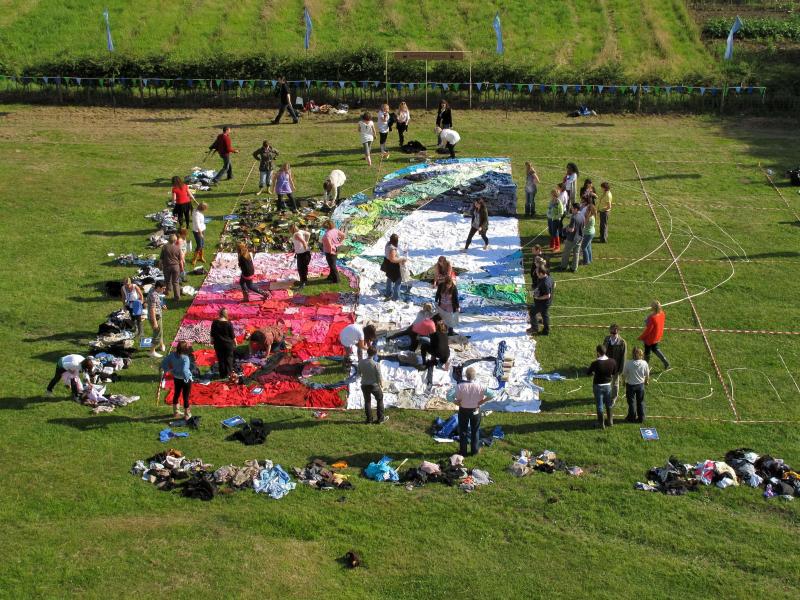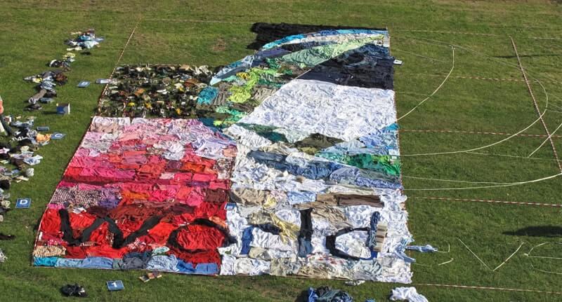 Create a giant logo out of second hand recycled clothing